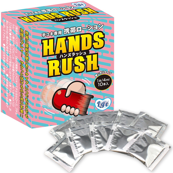 パウチ入り個包装!携帯に便利でお手頃なローション「ハンズラッシュ 4ml×10包」です。洗い不要で使いたいときにすぐに使えてサッと拭き取るだけでOK♪衛生的に使えて持ち運べるので完全ソロプレイ専用で外出先でも気軽にプレイ可能!お菓子箱のような持ち運びやすい箱に、使い切りのパウチローションが10個入っています。