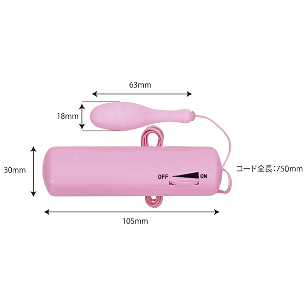 パッケージ:14.4×11.6×4.5cm 本体:ローター6.3×1.8cm・コントローラー10.5×3.0cm・コード長75cm 重量:45g 電池:単四電池×3本使用