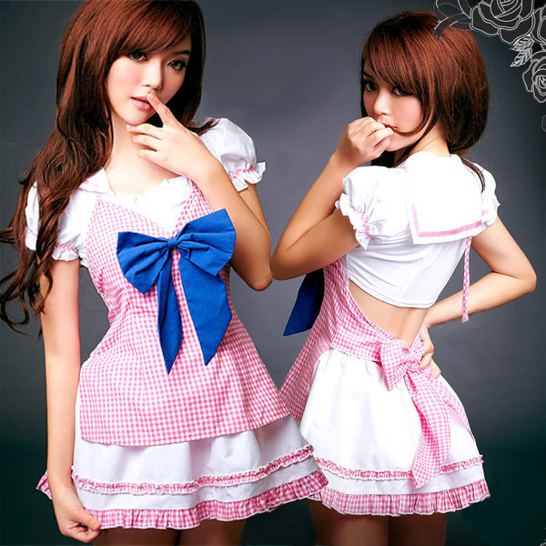 セーラー服とメイド服の最強コラボ!乙女心も男性のハートも掴んじゃうメイドコスチューム。●白×ピンクのセーラーワンピース●背中部分はソフトな伸縮素材●後ろから見るとセパレートになるドキドキ仕様●ギンガムチェック×青いリボンのキャミ風エプロン●ホルターネックとウエストを後ろで結ぶフリーサイズ。キャミソール単体でセクシーに、ワンピース単体でシンプルに、二つあわせて最強コーデにと3WAY楽しめる嬉しい仕掛け!前と後ろで印象がガラリと変わるセーラー風メイド服です。※製造時期により材質・レースの柄等が異なる場合がございます。※サイズ表記は実寸となりますので、生地の伸縮等により若干の誤差があります。