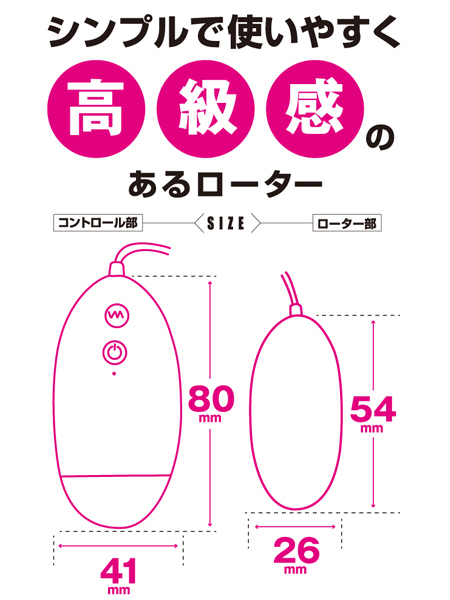 王道シンプルなエッグ型のシングルローター!コレさえあれば一通りの振動プレイはオッケー♪当てたり挿れたりブルブルさせて、多彩な12パターンからアナタのセンスで選んで刺激してください♪初心者さんでも手軽に扱えてとってもハイパワー!