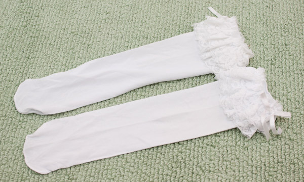 【430円★数量限定】リボン付きレースハイソックス 白<お一人様1点限り> 白