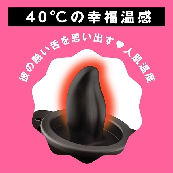 アツくて甘〜い愛のご奉仕クンニ_超!愛を感じる舐めローター!彼の熱い舌を思い出す温感機能は40℃まで温まる人肌温度_先っぽで刺激するチロチロクンニからグイグイ舐め上げる激しいクンニまで多彩なクンニが楽しめちゃう_さらに7パターンの振動機能付き!震えるあったかベロでとろける濃密前戯_やっぱりクンニがナンバー1!!!完全防水なので使用後のお手入れもラクチン♪敏感な部分に直接使うものだから、優しい肌あたりの高品質ソフトシリコンを使用しました。衛生的に保管できる蓋付きです。振動・舌舐め:7パターン&完全防水IPX7等級&充電用USBケーブル付属。カラー:ブラック