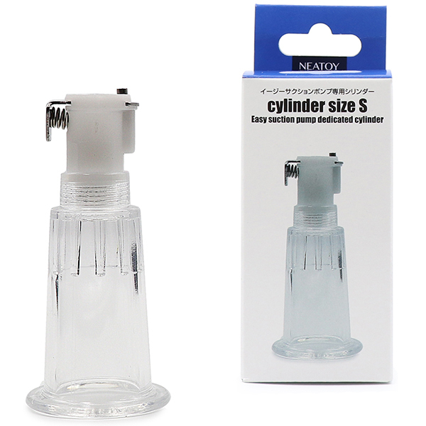 イージーサクションポンプ専用シリンダーのSサイズです。こちらのSサイズは内径が1.9cm。イージーサンクションポンプにはSサイズが付属しているので、両乳首を吸引したいのでしたらこちらを追加で購入すると良いでしょう。サイズ:6.7cm×3.2cm内径:1.9cm