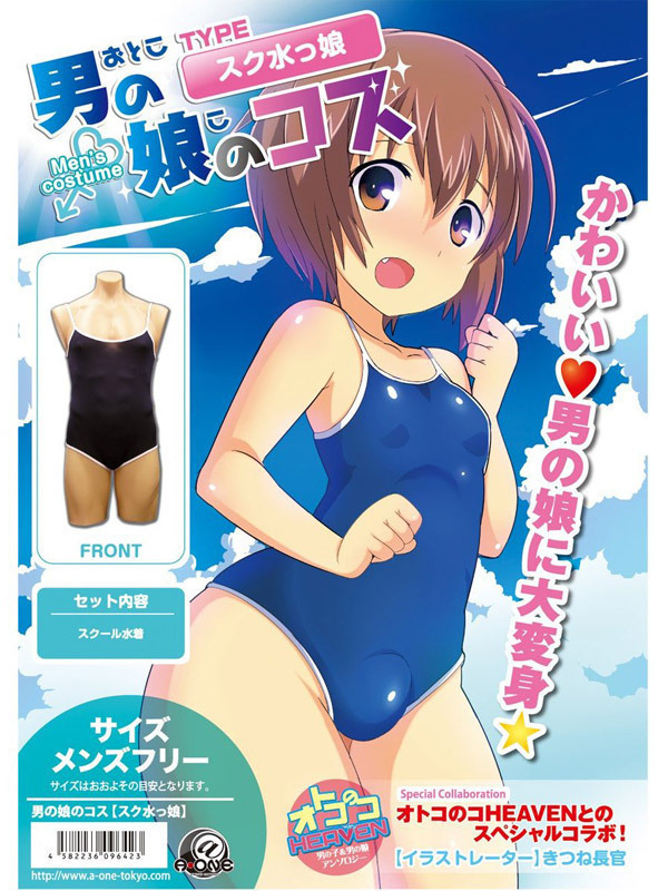 フリーサイズだから女装男子やスク水を着たい男の娘に最適!女性用と同じデザインのスク水男の娘「男の娘のコス」スク水っ娘。紺カラーを基調とした白パイピング入りのデザインは、どこからどう見ても女性用そのもの!お肌にピタッとフィットする感じがたまらなく、女装好きの男性心をくすぐります。コレを着ればアナタも可愛い男の娘になれる!?フリーサイズなので、多くの方に楽しんで頂けるコスチュームです。