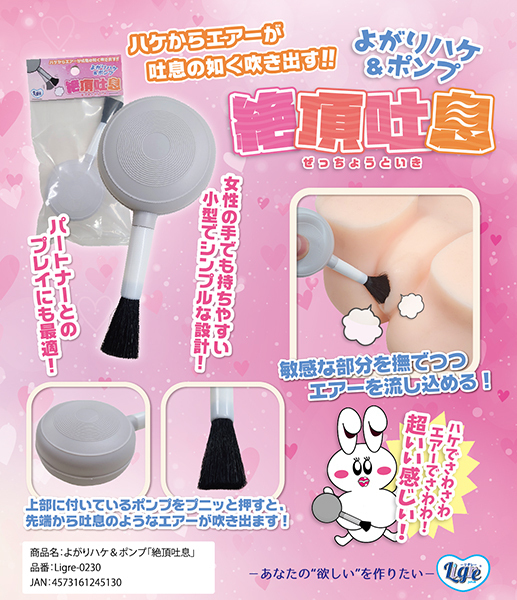 じわじわと感じながら楽しめるハケプレイ!吐息のような空気を発するポンプ機能をプラスした「絶頂吐息 よがりハケ&ポンプ」。古来からある「よがりハケ」、これに風を出すポンプ機能を追加!まるで吐息のようなエアーがハケの部分、先端から吹き出ます♪女性の手でも持ちやすい小型でシンプルな設計。パートナーとのプレイにも最適です!
