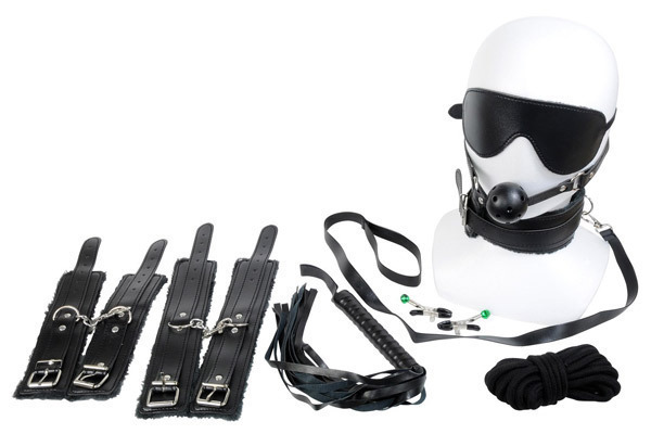 今すぐSMプレイを始められる豪華なスペシャルBOX登場!SM入門者でも気軽に楽しめる厳選SMグッズ8点セット。●ブラックカラーの合皮製●内側は柔らかな起毛素材●リード付きの首枷ベルト●ベルト式の手枷&足枷●フィットするアイマスク●ボール付きのベルト口枷●鈴付き乳首クリップ×2●緊縛プレイ可能なロープ●スパンキング用バラ鞭。SMに興味はあるけど、どれを買ったらいいかわからない…そんな方にもぴったり♪基本的な計8種類の厳選SMグッズを詰め合わせた豪華なSMプレイセット!統一感のある本格派デザインながら、安全に配慮された設計で初心者の方でも気軽にお楽しみいただけます。