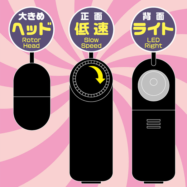 女性好みの刺激を選べるブラックカラーの電池式ローター。優しい微振動から激しい強振動、更に速度まで自由に調節でき、緩やかに上り詰める感覚も悶えるような刺激も思うが儘♪ヘッド部分は大きめ設計で当てやすく、操作はダイヤルを回すだけなので初心者さんでも簡単!焦らしプレイがお好きな方や手軽に使えるローターをお探しの方はぜひどうぞ。背面LEDライト付、単4電池2本使用