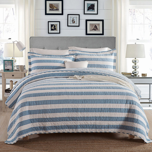 【3130円★数量限定】寝具 ボーダー柄デザイン枕カバー付き 3点セット<お一人様1点限り> ブルー/ホワイト