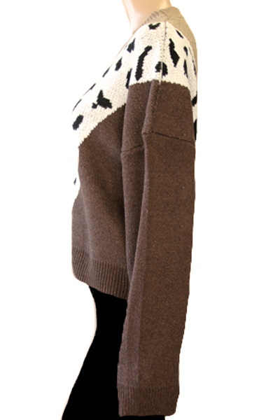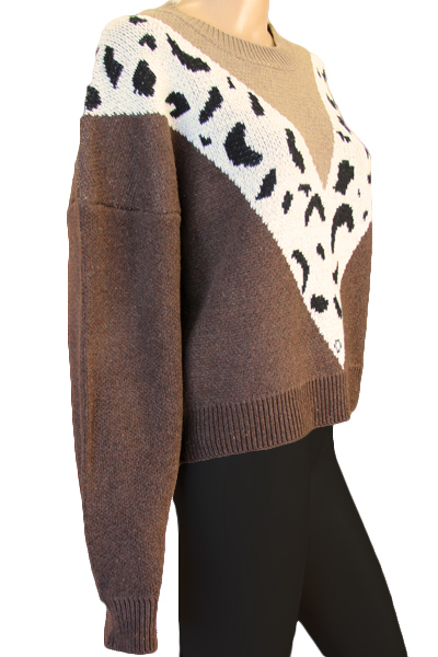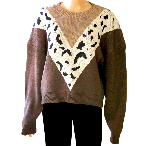 HOME > お買い得 > お買い得商品 > 【1180円★数量限定】V字ラインのヒョウ柄ニットセーター Mサイズ ブラウン<お一人様1点限り>