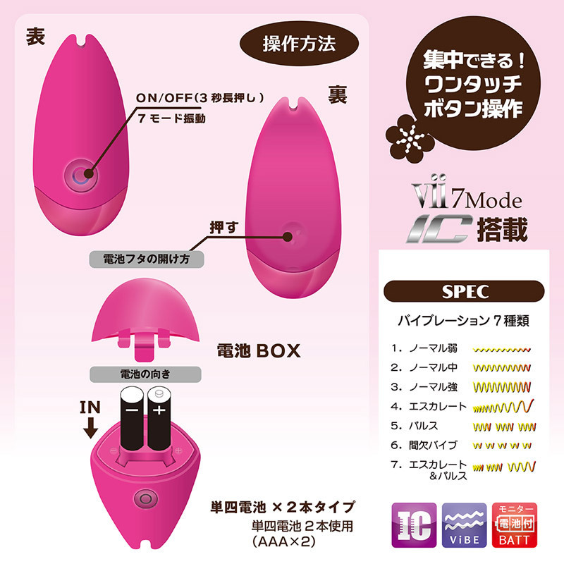 ガマンは禁物!いつでもどこでも女性が楽しめる持ち運びに便利なコンパクトローター。●アダルトグッズとわからないキュートなマウス形状●色鮮やかなピンクカラー●柔らかスベスベな高品質シリコン素材●7種のバイブ切り替えはワンタッチの簡単操作。先端で乳首やクリを摘めちゃう&感じる箇所に当てられる、使い勝手のいいアイテム。エッチな気分になったらこっそり秘密のプレイを楽しんじゃってください。