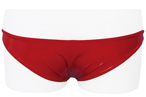 際どいラインで魅了するエナメル調のローライズビキニ(赤)。ピッタリとしたフィット感と光沢感で男の魅力を上げる♪貴方から溢れ出る色気にパートナーもドキドキ!●メーカー型番:MENG-009