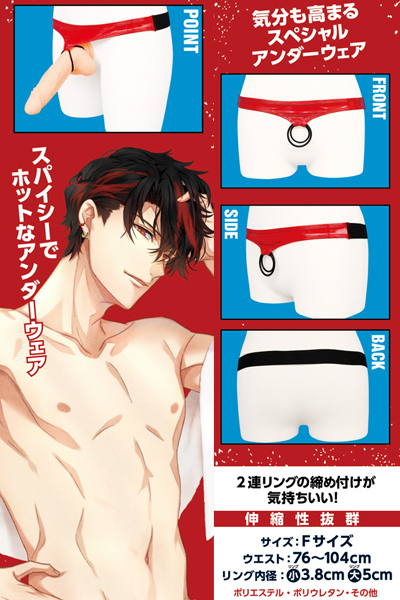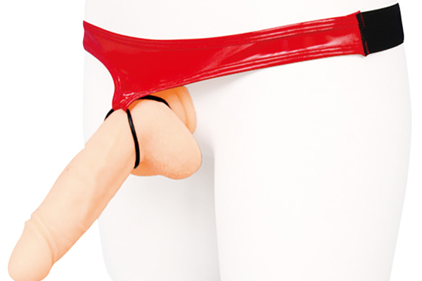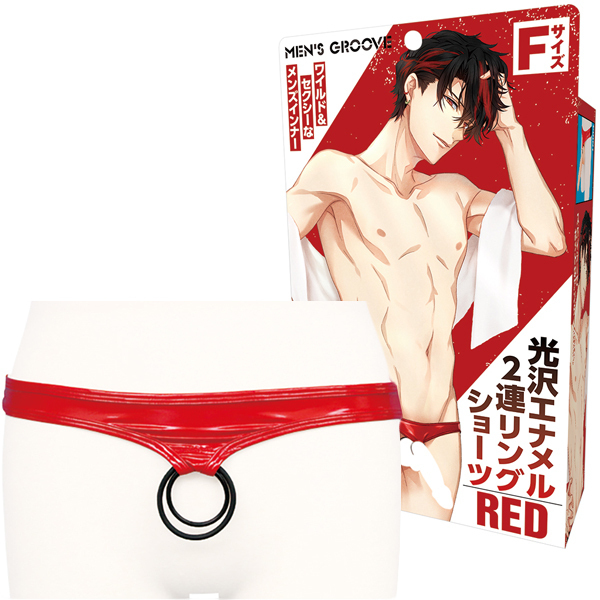 光沢感のある赤いエナメル素材が気分高める2連リング付のメンズショーツ。フリーサイズ●メーカー型番:MENG-017