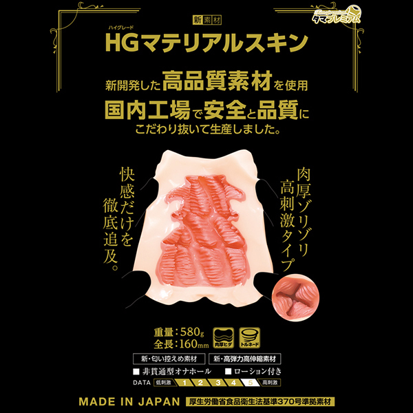 新素材ハイグレードマテリアルスキンによる肉襞みっちりな非貫通オナホ「TAMAPREMIUM HG 01」。重量580gで肉厚ゾリゾリな高刺激タイプ!快感だけを徹底追及し、国内工場で安全と品質にこだわり抜いて生産しました。2層構造による粘膜を思わせる内部は高弾力、高伸縮でトルネード配置された触手ヒダにより、挿入すると奥へ引きずり込まれるような快感の渦が堪能できます♪3段階に分けてセットされた肉襞に細かく施されたミゾ。適度にローションが滞留しゾリゾリとネットリが絶妙な快感を与えてくれます♪ニオイ控えめで食品衛生法基準370号準拠素材を使用!安心の日本製でローション付きだからすぐにお使いいただけます。●メーカー型番:TMPR-028