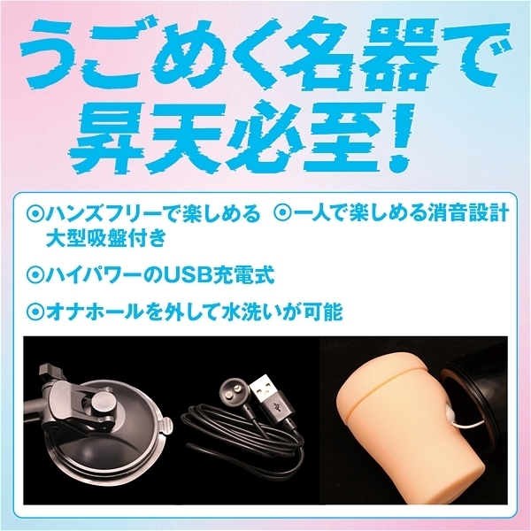 膣の中がうねうねと動く!10パターンの蠢き&振動のダブルモーター。うごめく名器で昇天必死!ハンズフリーで楽しめる大型吸盤付き、ハイパワーのUSB充電式、オナホールを外して水洗いが可能、超強力大型モーター搭載、一人で楽しめる消音設計、膣の奥がうねうねと動き絡みつく、締り抜群の肉厚な膣壁はゾリゾリと搾り取られるような感覚で細かい振動が敏感部分を刺激する。充電時間:120分、使用時間:60分●TAMS-1041