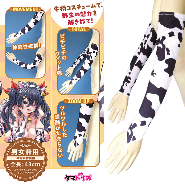 可愛い牛柄デザインのアームカバーが登場♪男女兼用で誰でも気軽に使えます!伸縮性抜群でピッタリ快適なフィット感♪ポリエステル90%、ポリウレタン10%の高品質素材!ツルツルした触り心地がクセになる♪腕をやさしく包み込み、動きやすさも抜群です!普段のコーディネートにも個性的なアクセント♪着けるだけでオシャレ度がぐっとアップします!お出かけやイベントでも楽しく使えますよ♪●TMT-1785
