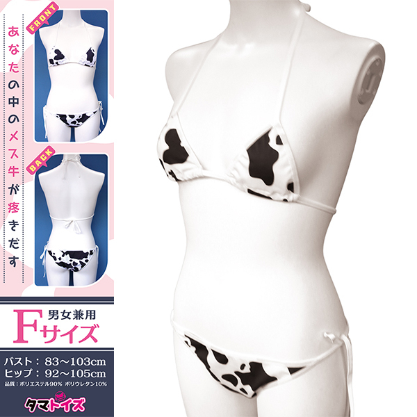 ポップで可愛い牛柄デザインのビキニが新登場♪男女兼用で使える、遊び心あふれるアイテムです!ポリエステル90%・ポリウレタン10%の快適な着心地♪伸縮性抜群の生地で、動きやすさもバッチリ!みんなの視線を引きつける、キュートな牛柄がポイント♪Fサイズで誰でも気軽に楽しめちゃいます!イベントやパーティーで目立つこと間違いなし♪牛柄ビキニで、楽しいひとときをお過ごしください!●TMT-1793