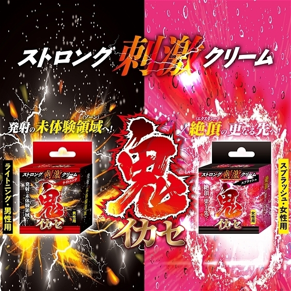 人気の鬼イカセシリーズより、ストロング刺激クリームが登場!!〜発射の未体験領域(ゾーン)へ!〜普通の刺激じゃ満足できないアナタへストロングな強烈刺激をお届け?使った瞬間、電撃(ライトニング)のようなビリヒリ刺激がアナタのチ○ポを容赦なく責めたてる?ライトニングスピードで発射の未体験領域(ゾーン)へアナタを導きます。6種類の植物エキス配合<成分>水、プロパンジオール、BG(アクリル酸ヒドロキシエチル/アクリロイルジメチルタウリンNa)コポリマー、スクワラン、ヒアルロン酸Na、ブドウ葉エキス、ハマメリス葉エキス、セイヨウトチノキ種子エキス、セイヨウキズタ葉/茎エキス、セイヨウオトギリソウ花/葉/茎エキス、アルニカ花エキス、イソステアリン酸ソルビタン、PEG-40水添ヒマシ油、ポリソノレベート60、フェノキシエタノール、メチルパラベン