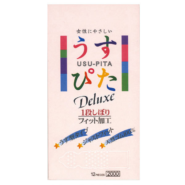 超薄型で柔らかいフィット感がとっても魅力的なピンクカラーのコンドーム「うすぴた2000」12個入。「三次元つぶつぶ凸起加工」と「特殊一段緊縮絞り加工」がとっても気持ちイイ!脱落防止加工がしてあるので、うっかり外れてしまう心配も軽減!ウエットゼリーも付いて、女性もホッと安心できるコンドームです。