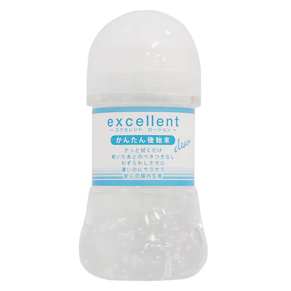 サッと拭くだけで、乾いた後のベタつきなし!かんたん後始末ローション(150ml)。サッと拭くだけで乾いた後のベタつきもなく、手間がかかる後処理のわずらわしさもゼロ!ゼリーのように濃厚なのに糸引きしにくく、サラサラの質感で肌なじみも抜群!お求めやすい150mlボトル入り、安心安全国内生産のエクセレントローションです。