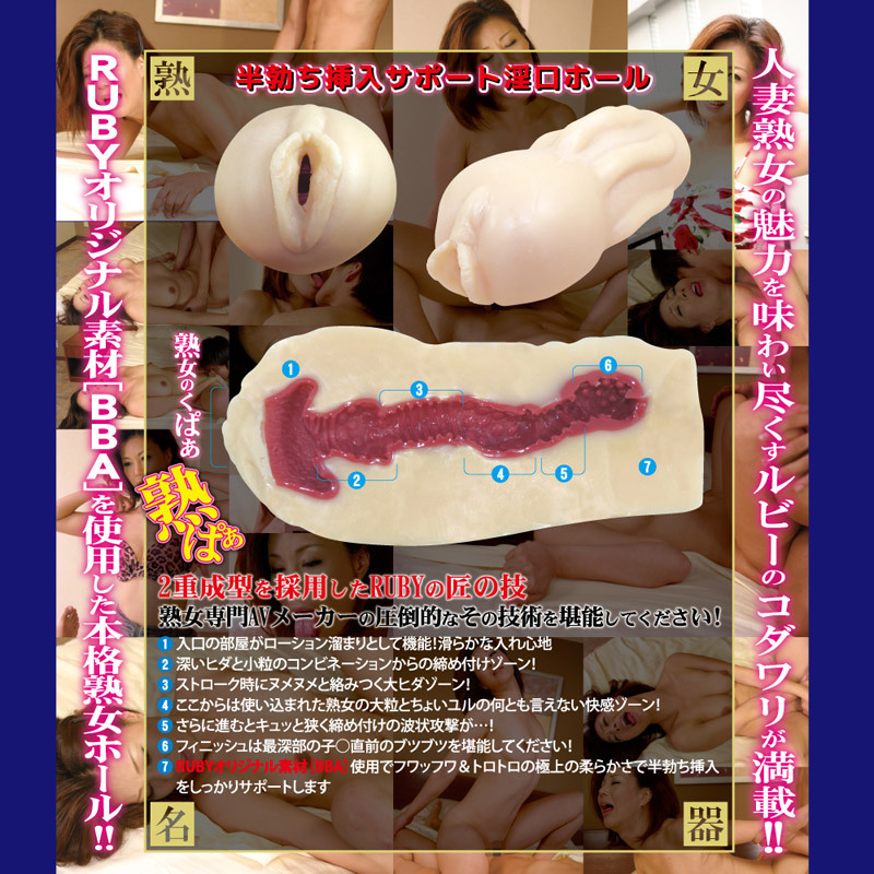 お得なDVD同梱バージョン!これ以上の快感はない!?熟女の魅力を知り尽くしたルビーのこだわりがたっぷり詰まった至高ホール(日本製)。●純淫「藤木未央」のアソコを完全再現●RUBYオリジナル素材【BBA】を使用●「熟ぱぁ」な挿入口は半勃でも挿入可能●挿入口すぐにローションポケット●スムーズな挿入をサポート●ヒダと大小様々なツブが繰り返し刺激●熟女とは思えない締め付けがフィニッシュへと促します。2重成型を採用した匠の技に、誰もが虜になる極上オナホールです。