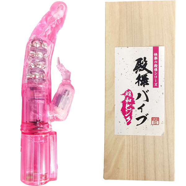 昭和のこけしバイブといえばこちら!レトロなデザイン故に、まだバイブのことをコケシと呼んでいた昭和時代にタイムスリップしたかのような気分にさせてくれる逸品。懐かしの昭和感漂う電動こけし・殿様バイブ。●殿様バイブ・昭和ピンクタイプ。●品格が漂う桐箱風パッケージ。●先細の亀頭でスムーズ挿入可。●絶妙角度のクリバイブが振動。●回転刺激のメタルパール内蔵。●振動&回転は個別に操作可能。●微調整しやすいスライド式。振動&パールの回転刺激にもう夢中!昭和っぽさ漂う桐箱風のパッケージが良い味を出しているこけしバイブです。