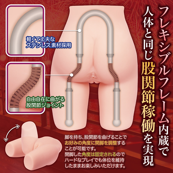 使用感に特に定評があり、まるで本当のプレイのようなリアルな擬似セックスが楽しめると好評だった前作の淫惑サジェスチョン(v01442)。あの日の想い出が蘇る、心地よい使用感はそのままに!マルチ体位モデルリングとしてさらなる進化を遂げた「淫惑サジェスチョン」シリーズの完全新作「淫惑サジェスチョン 極 -Supreme-」。人体と同じ股関節の可動域を実現したフレキシブルフレームを内蔵し、正常位・後背位・騎乗位と自由自在に彼女を抱けます!本体重量は6キログラムと抱き心地も抜群。フレキシブルフレームによる股関節可動で正常位では締まりが変わり、後背位ではリアルなお尻を突き出すポーズが、安定した騎乗位や股下デルタによる素股も楽しめる!軽くて丈夫なステンレス素材を採用しているので開脚の調整によるハードなプレイでも安心。誘惑する2つの穴でリアルな没入プレイをお楽しみください!