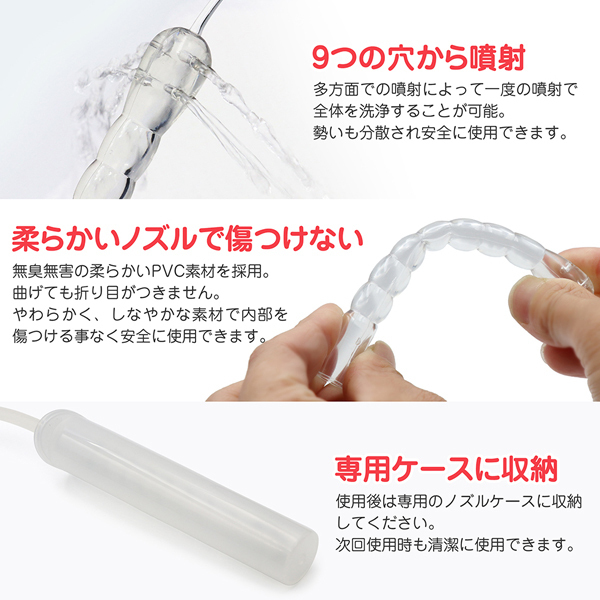 お気に入りオナホを長く使用しませんか?幅広い用途で使用できる手動式ポンプ型多用途洗浄器大型サイズ600ml容量のクレンジングボトルが登場。9つの穴から多方面に噴射!多方面での噴射によって一度の噴射で全体を洗浄することが可能。勢いも分散され安全にやさしく洗浄できます。ノズルは無臭無害の柔らかいPVC素材を採用。注入プレイ等幅広く使用できるマルチポンプキットです。使用後はノズルカバーを装着し清潔に保管できます。