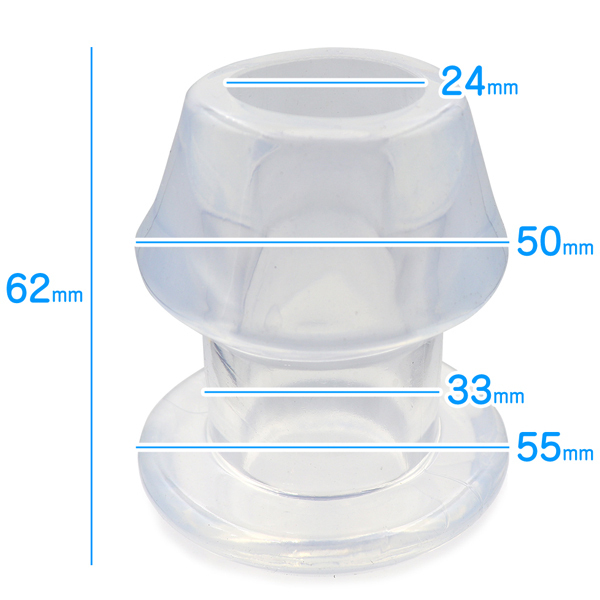 男女兼用!用途に合わせてサイズチェンジ!内部穴360度見渡せる極上の光景幅広いプレーが可能な多用途プラグ柔軟性と形状保持力を備えた透明色の拡張アイテムです。拡張プレイだけでなく観賞や洗浄、ローション注入等、幅広く活用できます。5サイズ展開はレディース、メンズ、初心者、上級者と使い分けが可能。ご自分の判断でご利用ください。素材:TPRサイズ:Sサイズ全長:62mm 最大幅:50mm(底部を除く)空洞内径:24mm