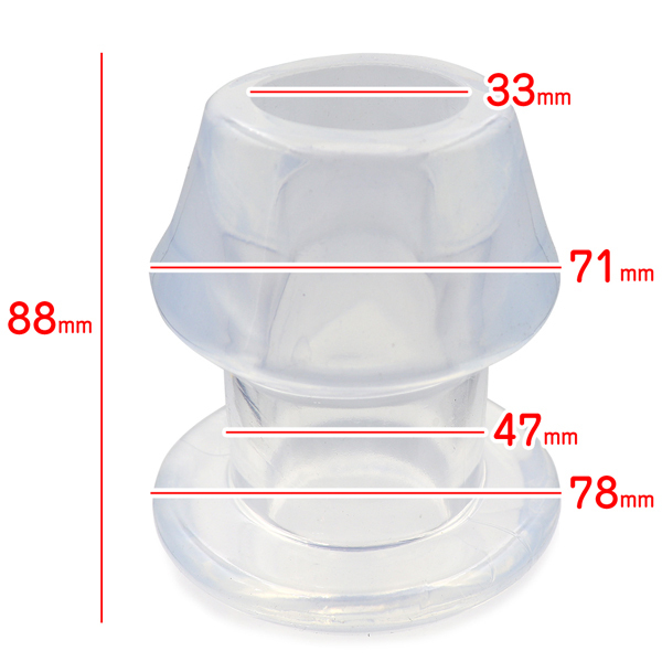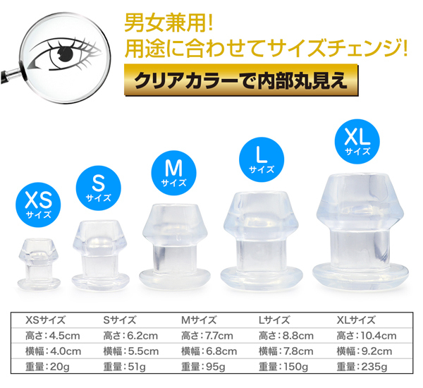 少し大きいアナタでも安心♪内部が丸見えな拡張トンネルプラグ!内部穴360度見渡せる極上の光景幅広いプレーが可能な多用途プラグ柔軟性と形状保持力を備えた透明色の拡張アイテムです。拡張プレイだけでなく観賞や洗浄、ローション注入等、幅広く活用できます。5サイズ展開はレディース、メンズ、初心者、上級者と使い分けが可能。ご自分の判断でご利用ください。素材:TPRサイズ:Lサイズ全長:88mm 最大幅:71mm(底部を除く)空洞内径:33mm