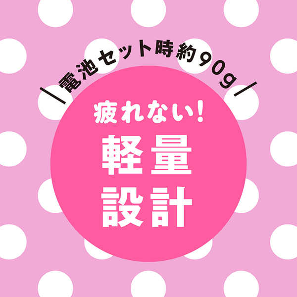 軽量でコンパクトで扱いやすい!まるでスティックローターのように使えるコンパクトな電マです。初心者の人に使って欲しいタイプでお求めやすい価格にこっそり遊べる静かな可動音♪電池を入れた状態でも90gの軽量設計ですので本当に使いやすいです。ヘッドの素材はプラ系でネックの動きは軽快!ワンボタンでオンオフと振動の強弱を簡単に操作でき、使いたい時にすぐ使えるよう、便利な電池交換式となっています♪電源は単4電池2本(付属)。こちらはピンクカラーです♪