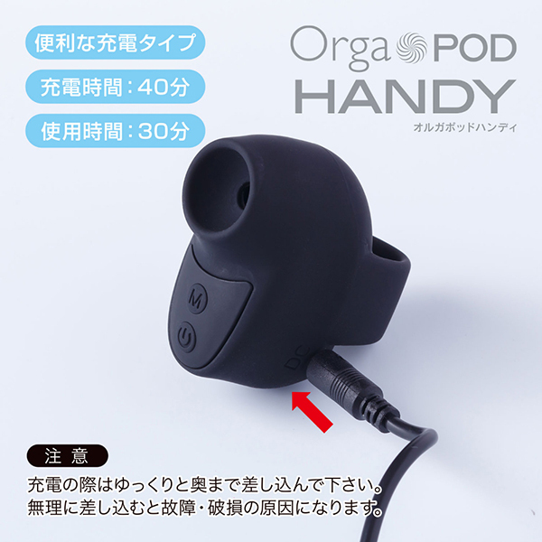 指に装着して使用する超小型サイズの「オルガポッドハンディ(ブルー)」です。充電式で生活防水機能を搭載!可愛らしくて小さいので持ち運びにも便利♪マイルドな吸引力でビギナーやお試し用にも最適のクリ吸引ローターです。3段階のパワー強弱と7段階の振動パターンを兼ね備え、お肌に優しいシリコン素材だから、つるっとした柔らかい感触がお楽しみいただけます!40分の充電でおよそ30分の連続使用が可能♪IPX5相当の防水性能を完備しており、ご使用後は優しく洗い流すことも可能です(水の中に沈めることは、おやめください)。カラーバリエーションはピンク・ブルー・ブラックの3色展開!小型で使いやすい、魅惑の吸引体験をお楽しみください。