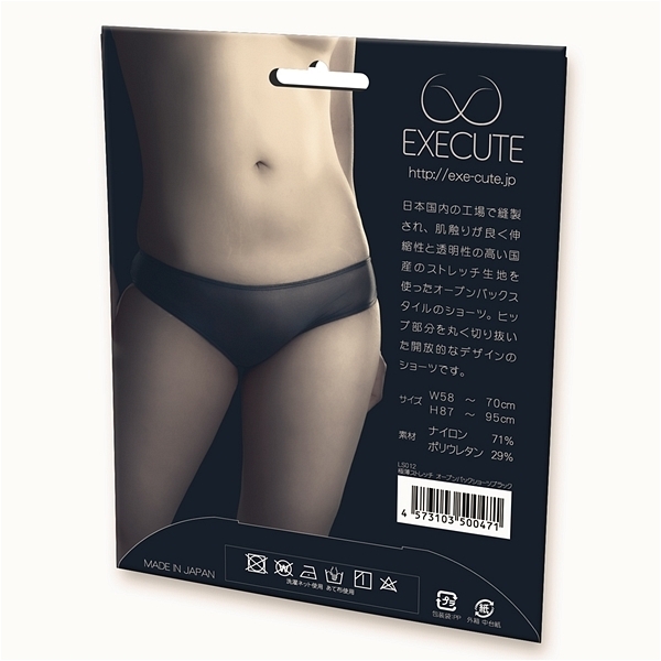 日本国内の工場で縫製され、国内縫製によるしっかりとした造りと伸縮性と透明性の高い国産ストレッチ素材を使った肌触りの良いオープンバックスタイルのショーツとなっています。クロッチは縫い目のないハギ無しとなっていて、プレイ用のショーツとしてもいい感じ♪ハーフバックなシルエットは見せすぎない感じが好評で、透け感と程よいニュアンスをしっかりと感じさせてくれます!カラバリはブラックとホワイトの2色展開でこちらはブラックとなっています♪