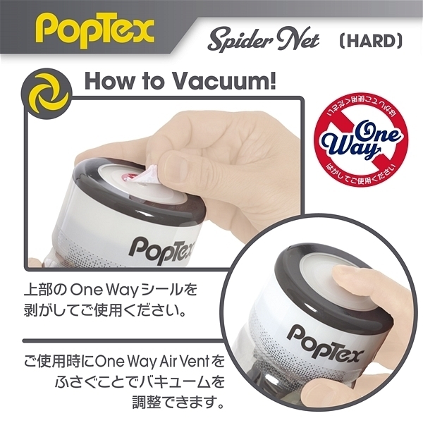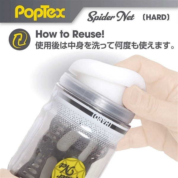 ポップテックススパイダーネットカップハード<リアルな締め付け×ネットヒダ刺激の高機能カップホール>新開発SpiderNetTechnology搭載型カップホール!ホールを包み込む柔軟性に優れたシリコンネットで最も気持ち良い形状に自動的に変形することでスポンジでは再現できない自然なフィット感とリアルな締め付け感を実現しました!内部構造は網目状のネットヒダの中心にアクセントのイボ刺激のアクセント!強力に吸い付く最奥のバキュームスポットは天面の「OneWay」シールを剥がし空気を抜いて挿入することで内部のまとわりつき感をより楽しむことが出来ます。ハードタイプのネットと肉厚のホールはギュギュッと高刺激な締め付け感で圧倒的な快感をあなたにお届けします。使い捨てカップは経済的にも衛生的にもちょっと不安!という方にもおすすめの、本体をはずして洗える「リユースカップ」仕様。ニオイ・ベタつきをカットした使い心地の良いもちもち素材を使用。YELOLABローション付属。
