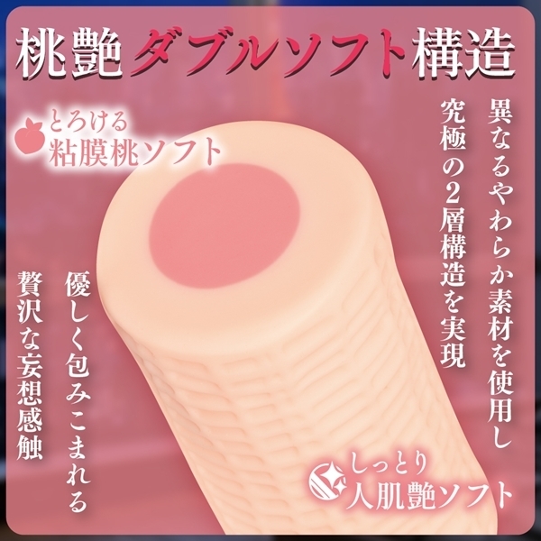 妄想を具現化する桃艶ダブルソフト構造で本気のち●内感触を追求!「妄想ヴァジナリティ」はナカとソトで異なる2つのやわらか素材「桃艶ダブルソフト構造」を採用した620グラムの肉厚オナホールです。妄想を具現化する為に、硬さの異なる2層構造を採用。外側からしっかり包み込む「人肌艶ソフト」と、しっかり絡みつく「粘膜桃ソフト」の贅沢2層構造で本気のち●内感触を追求しました。ホール内部は「リアルを超える」をコンセプトに様々なギミックであふれており、締め付ける「ち●筋フィットの大型突起群」やさしく擦り上げる「熟成モードの粘膜ヒダ群」絡みつく「子●口バキュームと連動した巨大な突起群」で全方向から密着した濃密な体験が味わえます。ホール本体は均等な外圧を逃さないように、シンプルな円柱ボディを採用。ホールの握り具合で内部感触を変化させる「人肌グリップ造形」で「肉厚の包容感」をロングストロークで余す所なく感じることができます。「妄想を具現化する」計算された「桃艶ダブルソフト構造」で搾り取られるやわらかな時間をお楽しみください。※保管に便利な専用ブリスターケース、オリジナルローション付属。