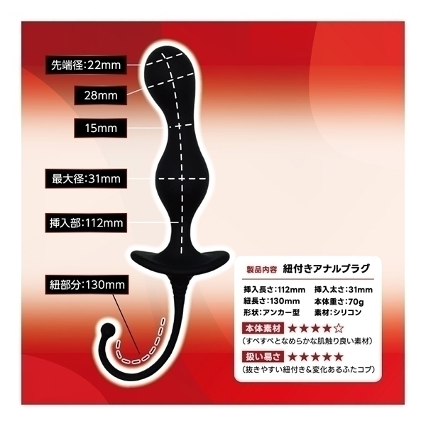 使いやすさと快適さを追求した設計が特徴のアイテムです♪滑らかなカーブ形状がスムーズな使用感を提供し、安心してお使いいただけます!アンカーデザインのストッパーが装着中の安定感をサポートし、適切な位置を保てるよう工夫されています♪取り外しが簡単にできるしっぽのような紐も搭載されており、使用後の取り扱いがスムーズです!本体には高品質なシリコン素材を使用し、触り心地も滑らかで快適です♪「ダブル」は2つの膨らみを持つデザインで、独特の使用感を楽しめます!シンプルながらも洗練されたシルエットが美しさを引き立て、安心してお使いいただけるアイテムとしておすすめです♪