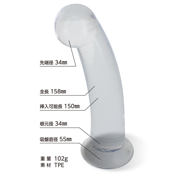 透明度の高い高品質クリアTPE素材を使用した上品なディルドです♪丸みを帯びたヘッドとなだらかなカーブが自然なフィット感を生み出します!滑らかな形状で抵抗が少なく、使いやすさと快適さを両立しました♪もちっとした弾力のある触感がリアルな感覚を演出し、使用感を高めます!底部には吸盤が付いており、壁や床にしっかりと吸着して安定した使用が可能です♪シンプルでスマートなデザインは清潔感があり、お手入れも水洗いで簡単に行えます!Lサイズはより深く、しっかりとした使用感を求める方に最適なサイズ感です♪持ち運びや保管にも便利なコンパクト設計で、幅広い用途に対応します!高品質で安心の日本製に近いクオリティを誇るおすすめアイテムです♪