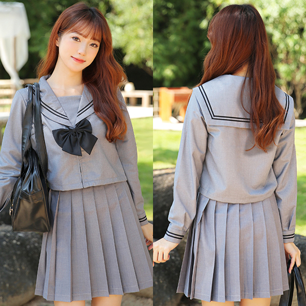 HOME > コスプレ衣装 > セーラー服・制服 > <malymoon>リボン付きグレー長袖セーラー